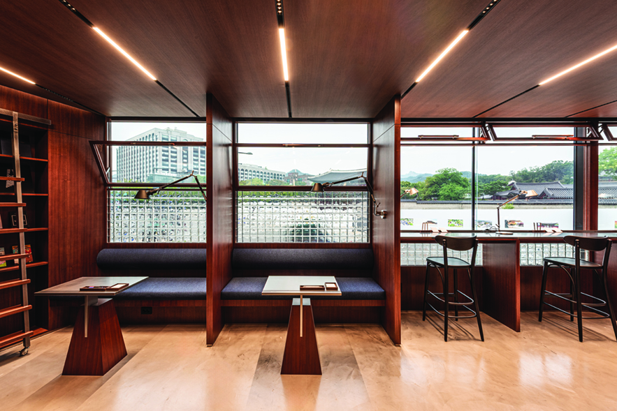 머무름의 2층 공간은 같은 결을 품었지만 각기 다른 분위기의 구역으로 서로 다른 리듬을 만든다. 짙은 목재가 품은 온기와 깊이는 공간 안에서 하나의 감정적 온도를 형성하며, 방문객에게 눈으로 깊이를 읽고, 이내 손끝으로 질감을 느끼며, 마지막에는 개인의 정서로 스며든다. 오래된 듯 깊은 결이 살아있는 공간은 고요함을 선사하며, 방문객을 천천히, 오래도록 머물도록 한다. 시간이 지날수록 더 많은 결과 감정이 이는 공간은 단순한 장소가 아닌 경험의 시간으로 확장된다.