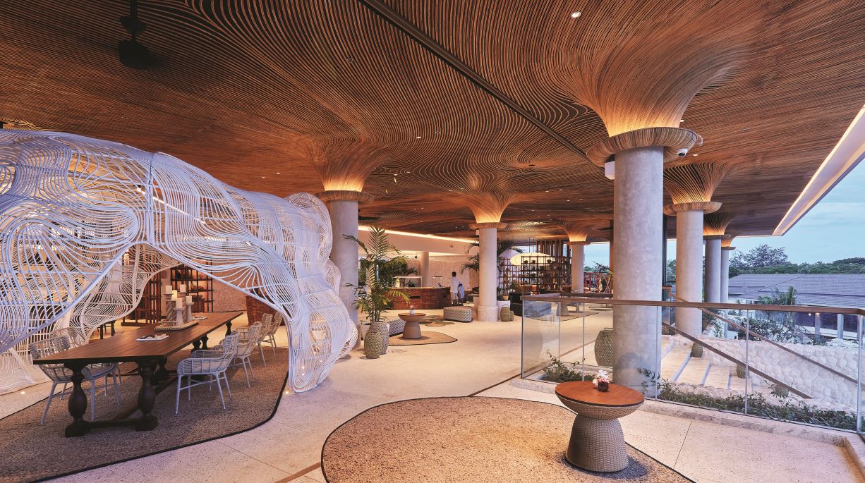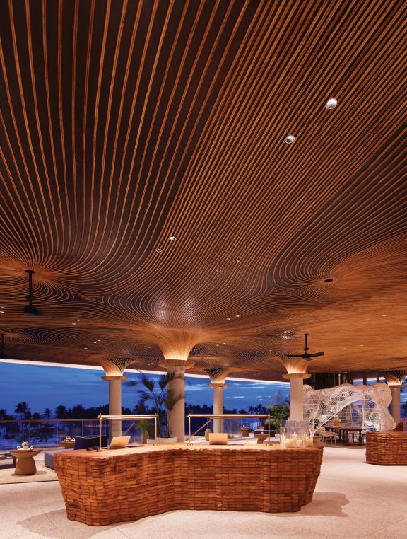 EPA가 설계에 가장 중점을 둔 부분은 각 공간을 하나로 엮는 주요 건축적 요소들을 구현하는 것이었다. 두 개의 입구 게이트, 유기적인 곡선의 코쿤 천장을 가진 웅장한 로비, 고지대를 따라 올라가는 회의장, 웨딩 장소, 야외 해변의 파빌리온으로 이어지는 중심 산책로 등이 그것이다. 아울러 지속 가능성은 프로젝트 전반에 걸친 핵심적인 고려 사항이었다. 로비와 컨퍼런스 시설의 천장은 모두 천연 소재인 라탄을 활용한 것이다. 보홀 섬에서 보이는 바다의 소용돌이, 자생 식물과 동물도 디자인 모티브가 되었다. 로비 천장에 표현된 소용돌이 형태와 유기적이고 물결치는 라탄의 선은 웅장하면서도 일종의 규칙을 형성한다.