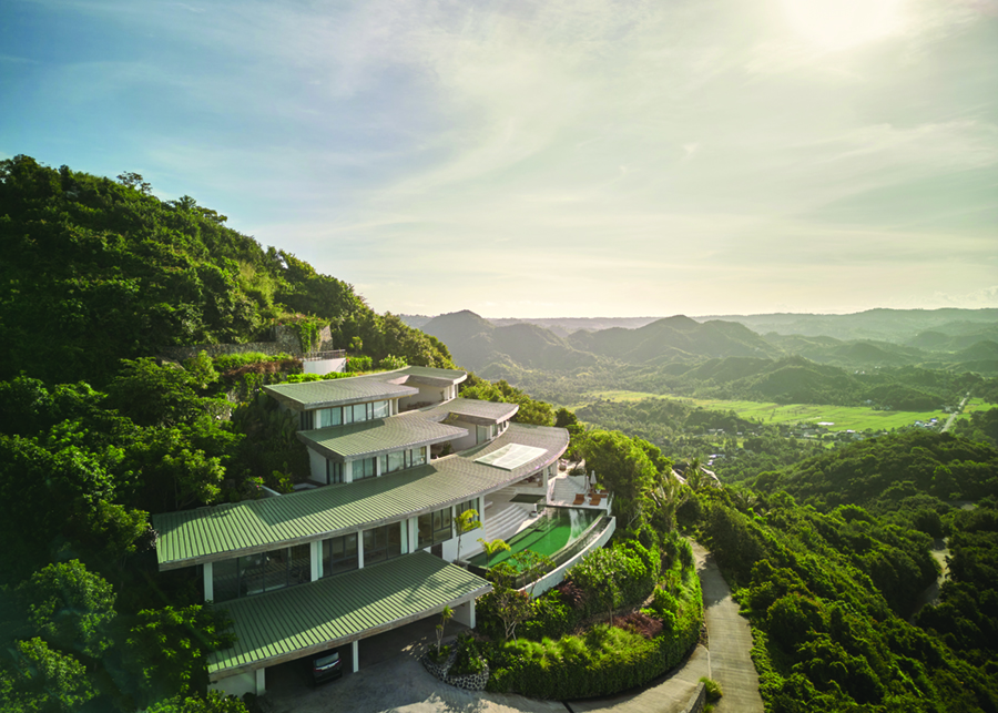 Villa Boë는 인도네시아 롬복(Lombok)에 있는 탐파 힐스(Tampah Hills)의 가장 높은 부지에 위치해 있다. 이번 프로젝트는 가파른 지형 자체가 설계 과정 전반에 깊게 개입한 경우다. 각 공간을 수직으로 쌓아 올라가는 방식이 도입된 Boë는 일반적인 건축물이라기보다 지형과 하나된 ‘대지미술(land art)’에 가까워 보인다. 평면 구성은 언덕 꼭대기를 중심으로 동심원과 방사형 세그먼트를 기본으로 하며, 이 기하학적 구조는 지붕 양식과 건물 전체의 구조를 결정한다. 이로 인해 건축물의 테라스는 마치 연속적인 계단식 지형으로 인식된다.