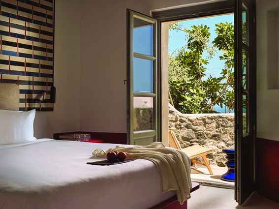 ©Mara Lazaridou, Alexandros Karpathakis, Anima VisionThe coarse stone walls flanking the balcony and pool play against the smooth curvature of the arches, establishing a rhythm of material contrasts. Beside the bed, windows and balconies that open to the sea and surrounding landscape offer a direct, immersive dialogue with the Greek environment. This gesture aligns with a nature-rooted design ethos, making thoughtful use of the local climate. Thick outer walls buffer the space from the harsh sun and wind while maintaining harmony with the surrounding architecture. Inside, a variety of elements speak in their own voices—each contributing to the overarching spatial narrative.