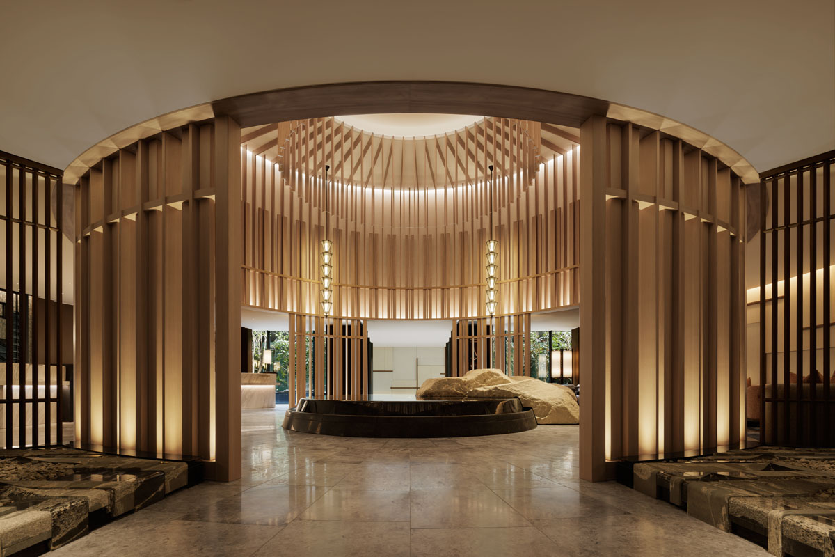 André Fu Studio는 홍콩에 본사를 둔 글로벌 디자인 스튜디오다. 세계적인 호텔 디자이너 앙드레 푸(André Fu)는 아시아와 유럽 전역에서 현대적 럭셔리를 재정의하며, 문화 간 다리를 놓는 디자인을 펼쳐왔다. 주요 프로젝트로는 Villa La Coste, Upper House Hotel, St. Regis Kyoto, Waldorf Astoria Bangkok 등 뉴욕의 전설적인 플래그십 호텔에서부터 전 세계의 랜드마크급 호텔까지를 아우르며, 세계 주요 도시의 스카이라인을 재정의해왔다. 이번 프로젝트는 세계적인 호스피탈리티 기업인 힐튼 산하 브랜드인 월도프 아스토리아(Waldorf Astoria)의 일본 최초 브랜드 공간을 의뢰한 것이다. 이전의 Waldorf Astoria New York이 시대를 초월한 우아함과 상징적 유산을 반영한다면, 2025년 5월 개관한 이번 오사카 호텔은 지역적 맥락을 반영하여 시대적 건축 언어로 브랜드와 도시의 정체성을 동시에 담아냈다고 볼 수 있다.
