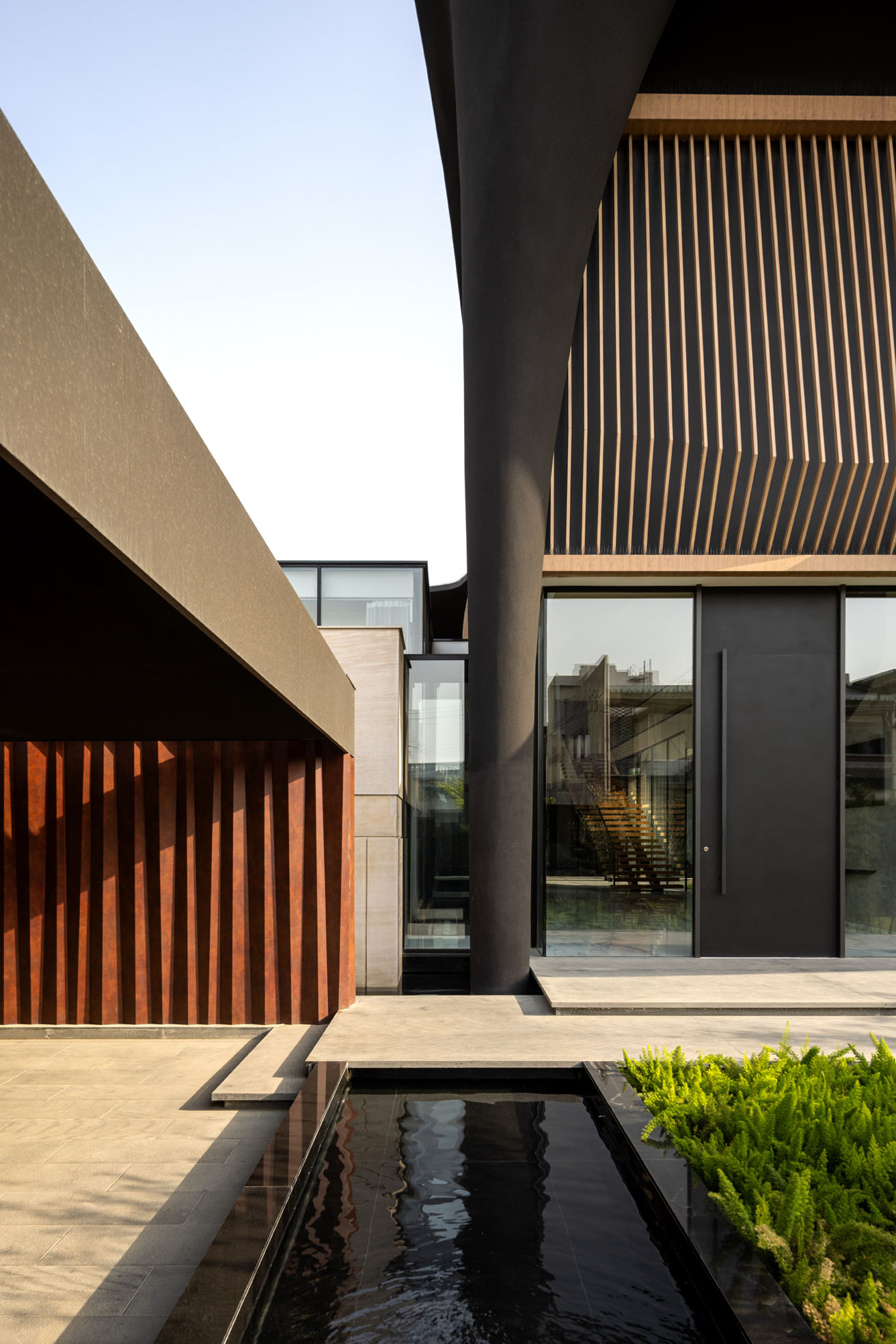 Residence ONDRA는 차분함과 연속성에 대한 공간적 탐구로 시작된 프로젝트다. 자연과 완벽하게 통합되는 장소로 구상된 이 주거공간은 빛, 물질, 물이 서로 소통하며 경험적 미묘함과 건축적 표현의 균형을 맞추어간다. 특히 태양의 경로와 일치하도록 의도적으로 계획된 L자형 구성과 차분한 우아함을 간직한 입구는 이 공간의 고급스러움을 한층 돋보이게 한다. 입구에서 하늘을 반사하는 물의 흐름과, 의도적으로 각 움직임이 고려된 돌길 역시 공간 전체의 분위기를 조성한다. 유동성, 가벼움, 명확성. 이를 염두에 둔 디자인은 차분하고 중심적인 입구 로비를 지나 Residence ONDRA 전체를 통해 발현된다.