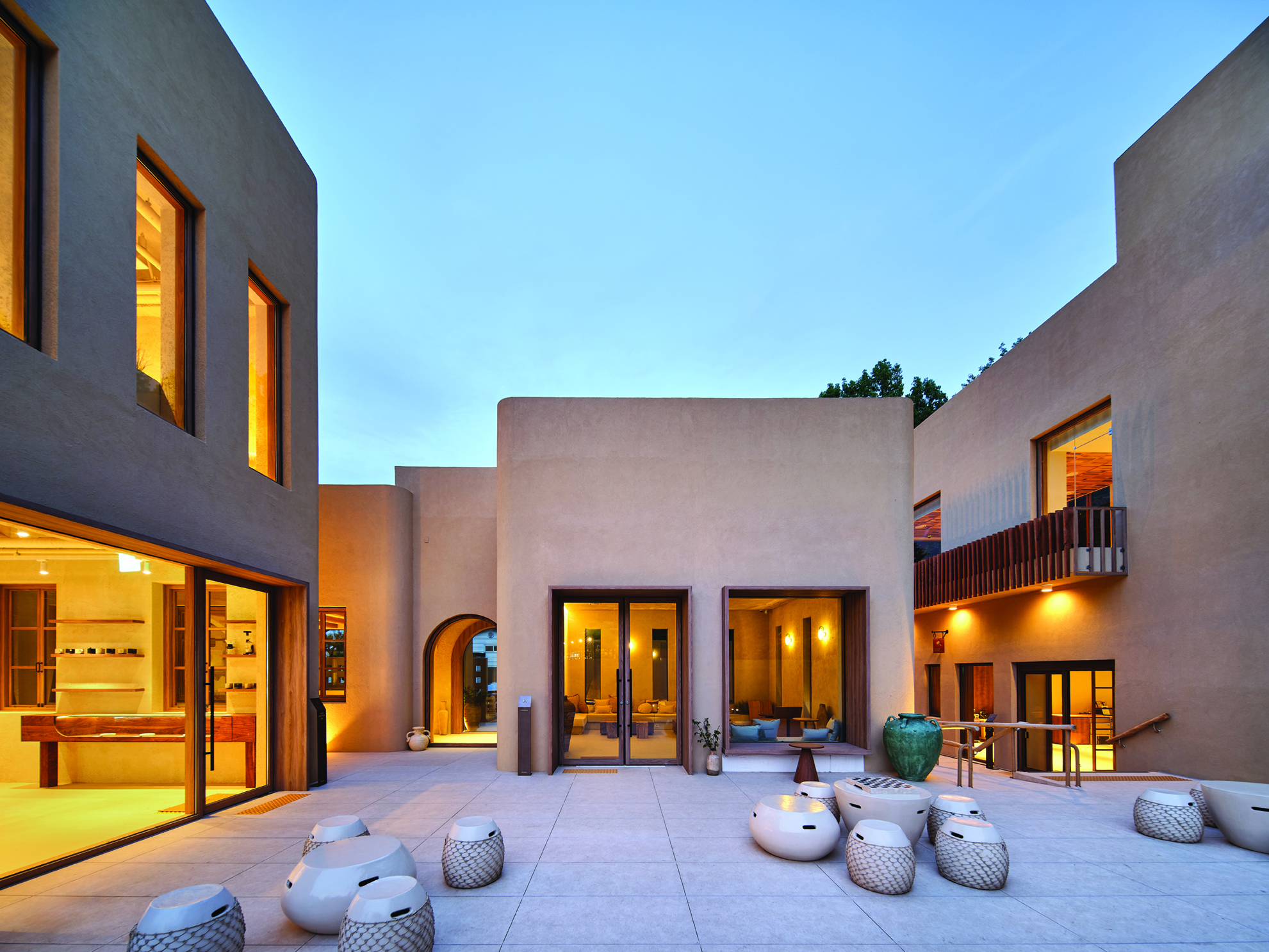 카페와 연결된 브릿지동으로 이동하면 아치형 양식으로 설계된 공간이 드러난다. 브릿지동은 복층 카페와 웜홀동을 연결하는 중간지점에 위치하며, 건물과 건물 사이에 골목을 형성해 머무름과 이동 사이 감정적 완충 공간으로 작동한다. 긴 복도 내부에는 한쪽 벽면을 따라 길게 이어지는 수직창과, 반대편의 넓은 창이 시시각각 변하는 자연광과 바람으로 다채로운 공간 경험을 제공한다. 이어지는 웜홀동은 빛과 어둠, 개방과 폐쇄의 경계를 유연하게 넘나드는 공간으로 기획되었다. 내부는 하나의 큰 볼륨 속에서 벽과 천장이 곡선으로 이어지며, 시선의 깊이와 공간의 밀도를 조절하도록 설계되었다. 낮에는 상부 개구부를 통해 자연광이 깊게 스며들고, 밤에는 벽면의 간접 조명으로 시간대에 따라 상반된 분위기가 연출된다. 벽면에는 자연스러운 사막의 질감을 표현하기 위해 스타코플렉스의 텍스처를 활용했다.