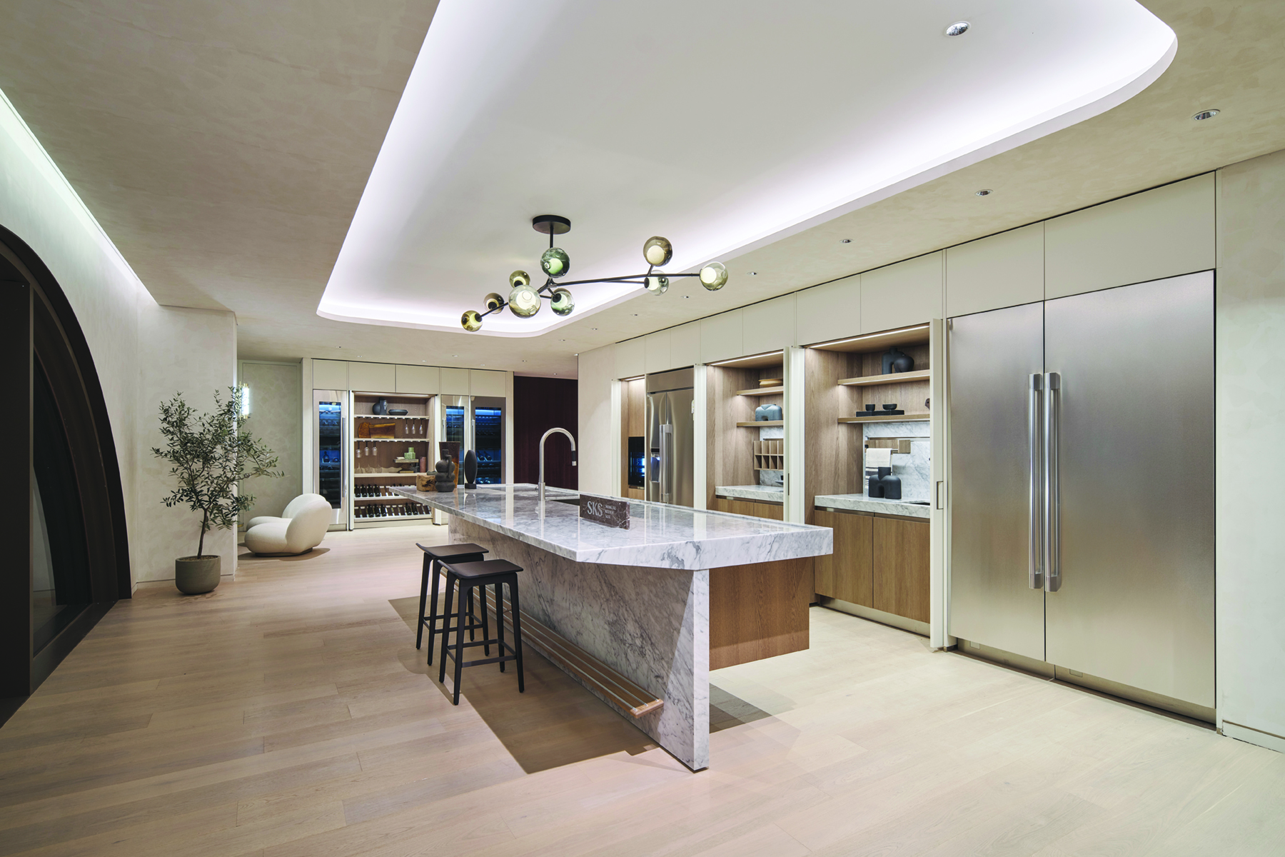 SKM Architects는 아치형 창을 통해 시원한 개방감을 확보하고, 빌트인 가구를 제외한 내장재는 밝은 톤으로 구성해 몰입과 여유가 공존하는 분위기를 완성했다. 거실로 이어지는 동선은 방문객으로 하여금 단순한 체험 공간을 넘어, 삶의 공간을 새롭게 인식하는 경험으로 확장된다.