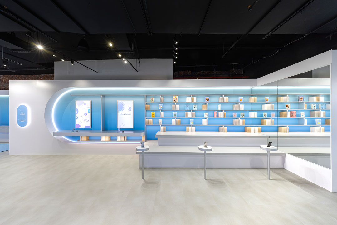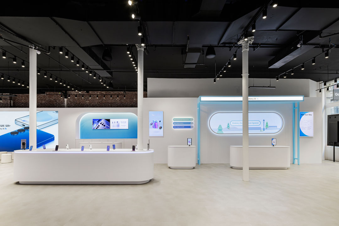 공간디자인은 'Get things done', 'Learn', 'Create’로 이어지는 일상의 대표적인 상태를 중심으로 구성되었다. 이에 고객은 공간을 거닐며 하루의 흐름과 일상의 장면을 자연스럽게 체험할 수 있다. 일정, 이동, 학습, 창작 등 일상 속 다양한 상황에 따라 유연하게 변화하는 Now bar의 특성은 곧 사용자의 일상을 구성하는 순간들과 맞닿아 있다. 체험 공간은 버스 정류장을 닮은 체크인 카운터에서 시작되며, ‘New ways to Get things done’, ‘New ways to Learn’, ‘New ways to Create’로 이어지는 세 가지 AI 체험 공간으로 이어진다. 이에 라이프스타일, 학습, 창작 등 일상의 다양한 순간 속 Galaxy AI 기능을 직접 경험할 수 있도록 구성하였으며, 각 공간은 집, 도서관, 포토존을 연상시키는 환경으로 연출되어 체험의 몰입도를 높인다.