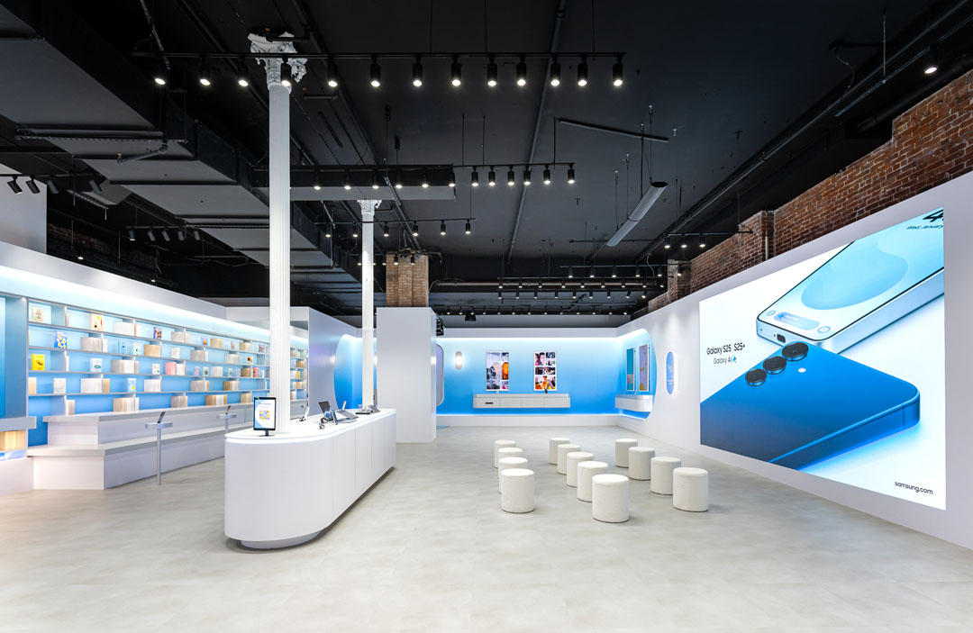 Galaxy Experience Space는 Now bar를 중심으로 일상 속 AI 경험을 공간으로 풀어낸 팝업으로, 고객이 공간을 거닐며 확장된 일상과 더욱 편리해진 S25 시리즈의 사용성을 자연스럽게 경험할 수 있도록 설계되었다. 사용자의 하루 흐름 속에서 필요한 정보를 그 순간에 맞춰 제안하는 UI Now bar는 단순하고 명확한 둥근 형태의 공간으로 설계되었다. 특히 세 가지 AI 체험 공간의 벽면을 Now bar 형태의 움푹 들어간 구조로 설계해 공간 전체의 아이덴티티를 형성함과 동시에 각 체험 영역을 명확히 구분하였다. 벽면 내부에는 하루의 시간 흐름을 담은 그라데이션을 적용해 변화하는 일상을 시각적으로 표현하였다. 가구와 디테일 또한 곡선 위주의 형태로 통일하여 UI와 공간 경험 간의 일관성을 강화하였다.
