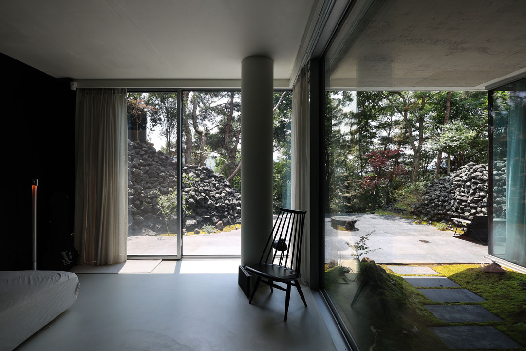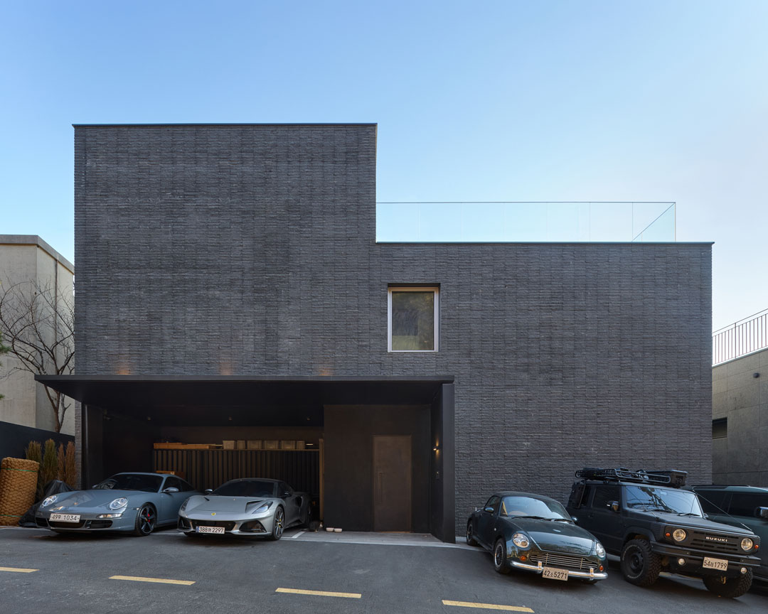 이에 건축가는 최대 면적을 확보하기 위해 단순한 형태의 건물을 계획했다. 남측 서울 전망 방향의 입면은 전면을 개방형 창으로 구성한 반면, 북측 도로 방면에는 최소한의 창만 두어 프라이버시를 확보했다. 그 결과 지하층 역시 전면 유리창 너머로 기획된 조경이 한눈에 들어오도록 구현되었다.