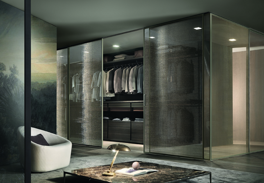 Glossy and Matte lacquered Glass, Fabric, Leather, Wood, LED Lighting (DRESS BOLD)