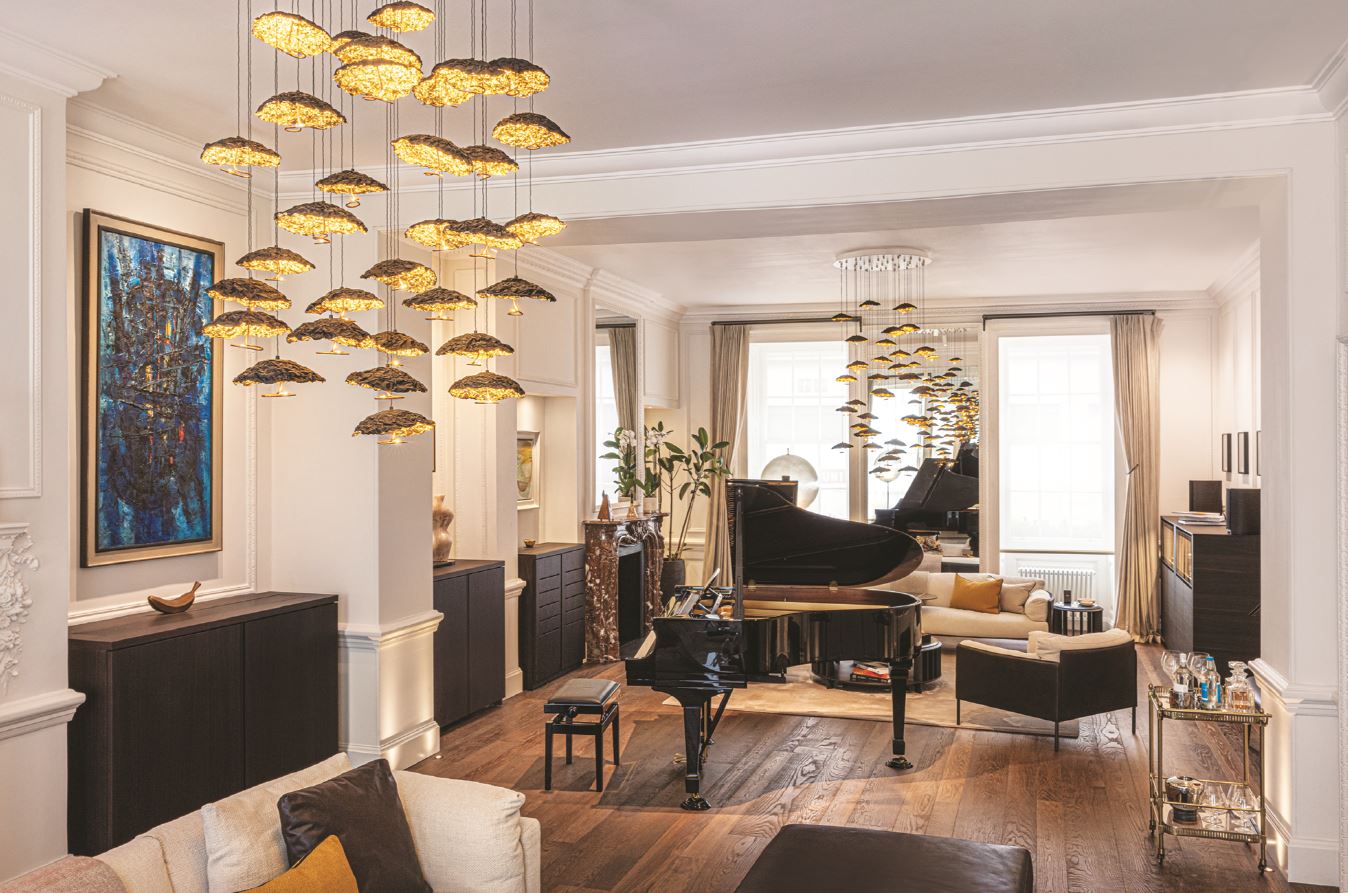 금빛으로 빛나는 샹들리에의 레이어는 어느 공간에서도 인테리어의 분위기를 한 단계 우아하게 전환한다.