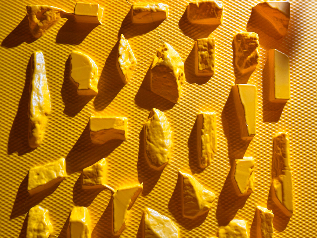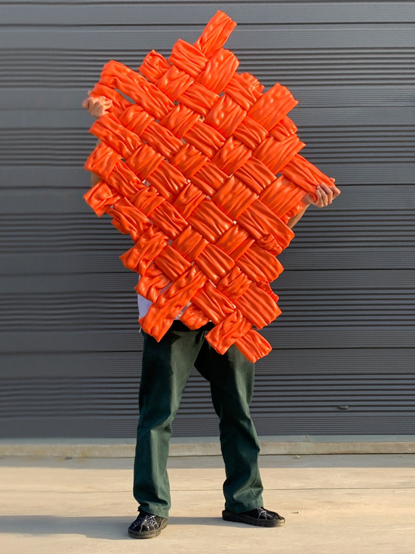 첫 개인전 'Hiden side out'에 소개된 작품. 산업 포장재의 ‘안쪽 면’을 바깥으로 뒤집어 전시장에 세우며 뒤집는 행위가 만드는 가치와 미감의 이동을 다룬다.