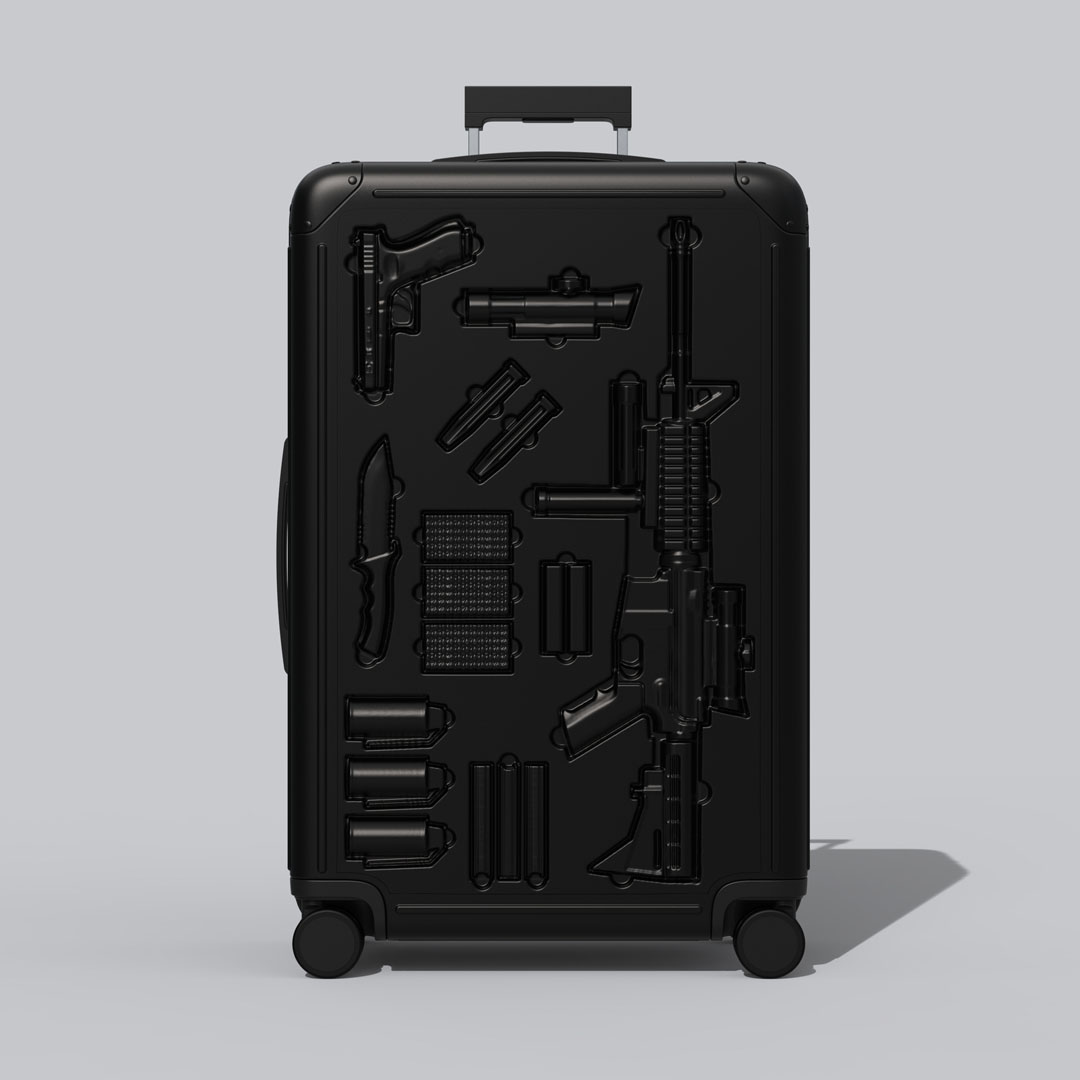 자유와 여행, 선택권을 상징하는 캐리어 표면에 총기의 실루엣이 얹히는 순간 관객은