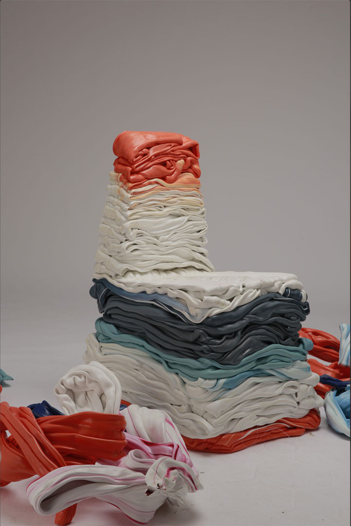 A contemporary artist turning discarded plastics into furniture and collaborating with AI in painting.