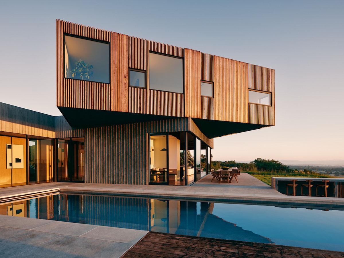 2025년 봄 완공된 주택 'Moksha'는 미국 캘리포니아 포톨라 밸리에 자리한다. 건축물은 특정 장소에 시간이 지남에 따라 거주하는 층층이 쌓인 물질적 조건과 그 너머로 확장되는 것들을 중심으로 사색적인 틀을 설정한다. 견고한 1층 콘크리트 벽과 재생 목재 사이딩(외장재), 비 가림막은 상부 매스를 연결하고 주변 맥락과 조화를 이룬다. 메인 하우스와 게스트 하우스로 구성된 건물은 직교하는 기하학적 구조가 회전해 안뜰과 시야를 형성하고, 조각적 소재와 주위 풍경의 조합은 시각적 절정을 이룬다.