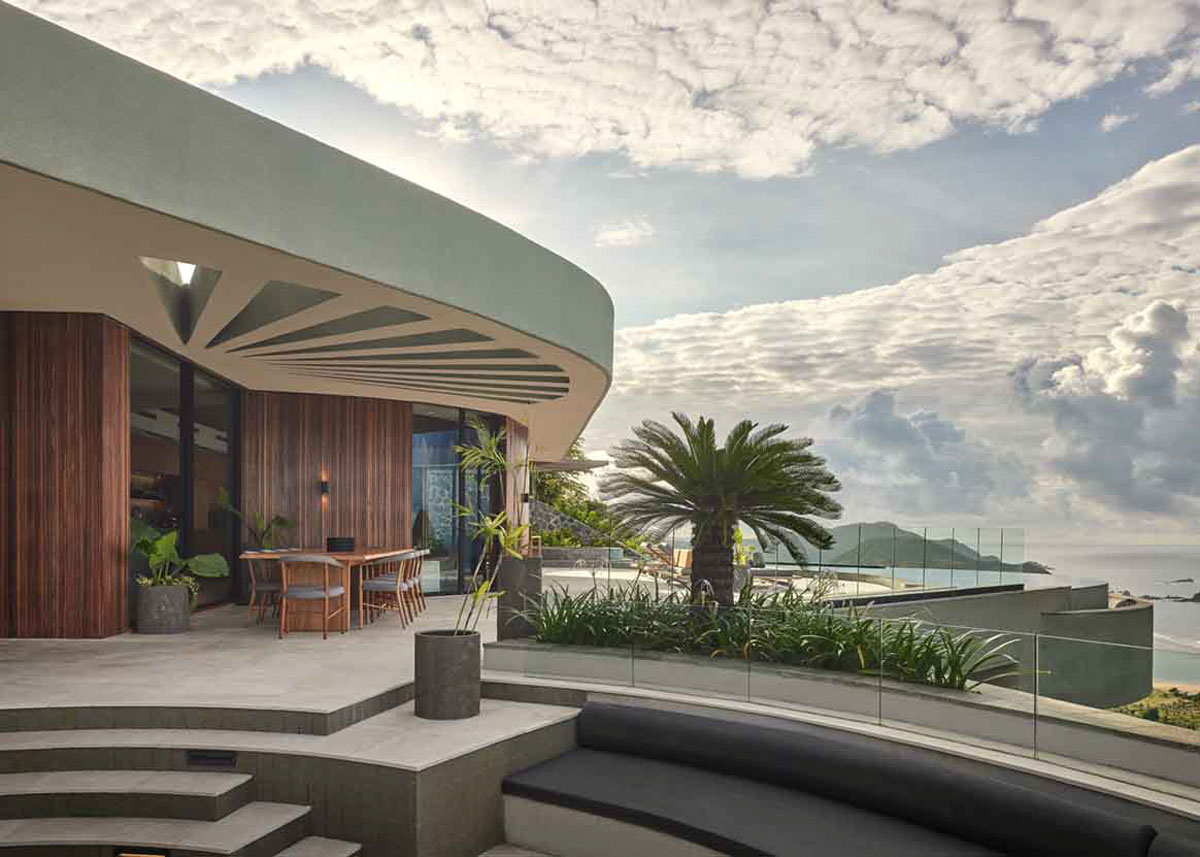 ©KIESituated on one of the steepest slopes of Tampah Hills in southern Lombok, Indonesia, Nyrenstone Estate is a house whose form is shaped by the terrain. The building follows the slope of the hill and is designed according to a geometry of circles and tangents.