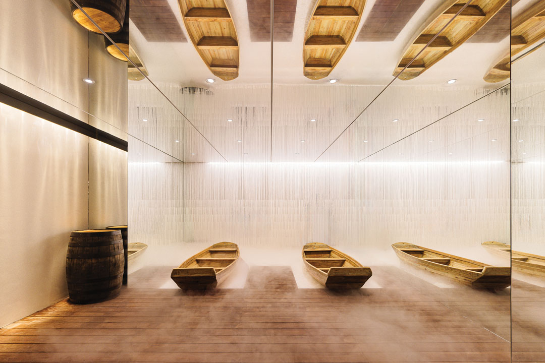 스페이스닷은 선박을 1/4로 절단한 형태로 설치하고, 기존 건축물의 기둥을 배의 구조 요소로 적극 편입시켰다. 'ㄱ'자 형태의 벽면 전면에 거울을 적용해 단편적으로 배치된 선박이 하나의 온전한 형태로 인식되도록 계획했으며, 이를 통해 실제 공간의 물리적 한계를 넘어 체감 공간감을 확장시켰다. 대형 선박으로 이동하기 전 조성된 작은 방은 여행자가 출항에 앞서 자료를 수집하고 연구하던 공간으로 설정되었다. 커다란 배 앞에 정박한 작은 나룻배와 양쪽에 설치된 거울은 배들이 끝없이 이어지는 선착장의 풍경을 완성하며, 이동과 정박, 시작과 머묾이 공존하는 나루터의 감정을 집약적으로 드러낸다. 과거와 현재, 현실과 상상이 교차하는 지점에서 이 프로젝트는 방문객의 상상을 환기하고, 이를 밀도 높은 공간적 경험으로 치환한다.