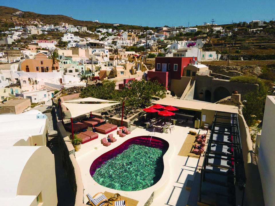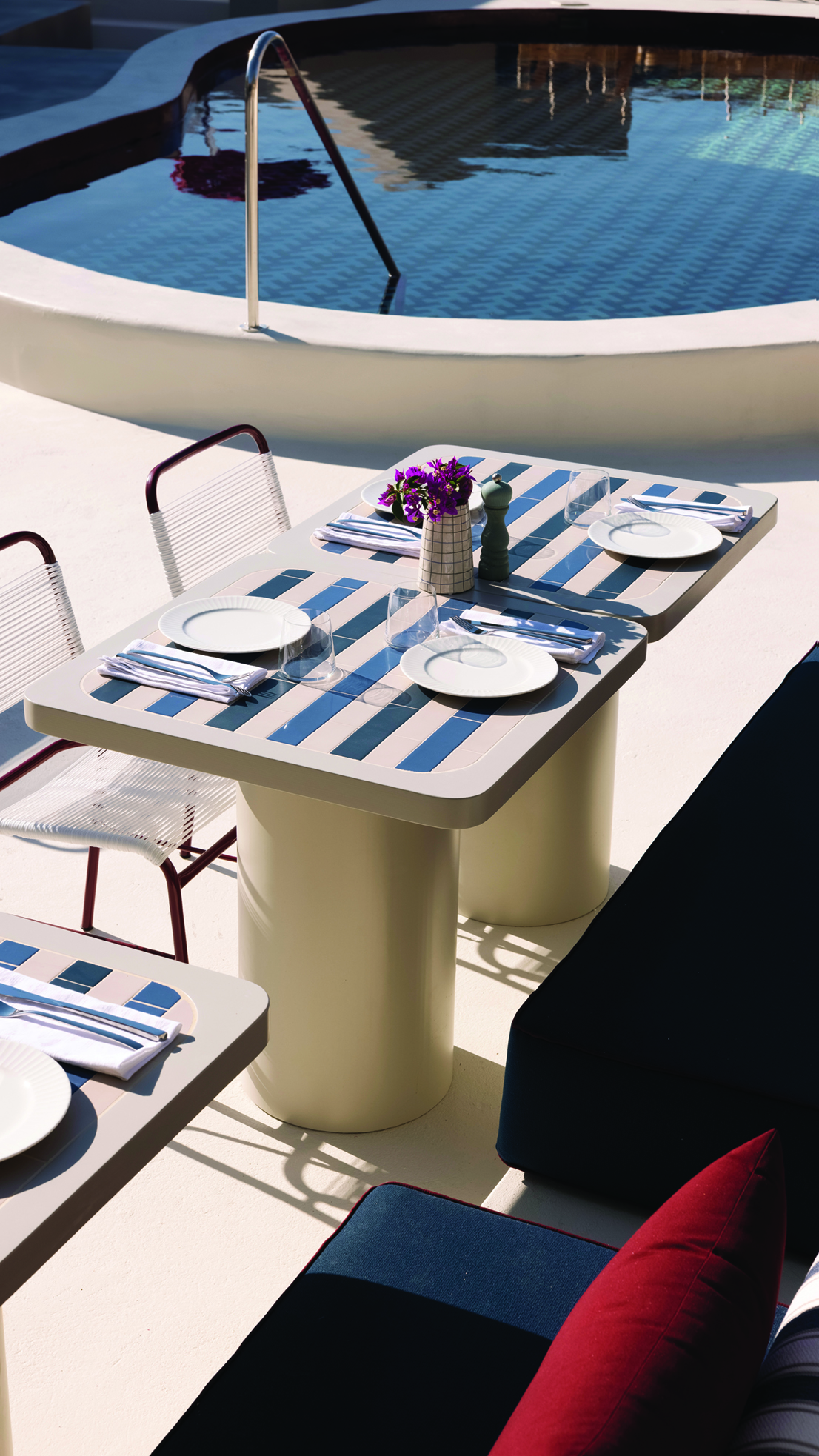 ©Mara Lazaridou, Alexandros Karpathakis, Anima Vision그리스의 력셔리 호텔 브랜드 'Domes Resorts'의 의뢰로 이뤄진 이번 'Neema Maison Finikia Santorini' 프로젝트의 핵심은 화이트 톤의 기존 리조트 인테리어 문법에서 벗어난 공간을 조성하는 것이다. USP는 '패션, 자연, 그리고 예기치 않은 순간이 만드는 대담한 대화'라는 디자인 내러티브를 바탕으로, 건축과 예술, 아이덴티티가 유기적으로 결합된 몰입형 디자인을 기획했다. 고급보다는 감각을, 정제보다는 생동감을 택한 USP는 풀장 바닥 타일에도 직조 무늬를 통해 유기적인 변주를 부여했다. 따사로운 태양 아래 브라운과 민트 패턴은 리조트 내 가장 감각적인 조화 중 하나로 꼽힌다. 나무와 돌, 패턴 직물, 타일의 재질들은 빛과 그림자 안에서 서로 조화로운 관계를 형성한다.