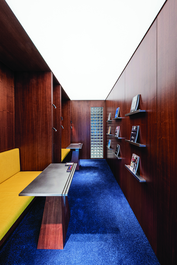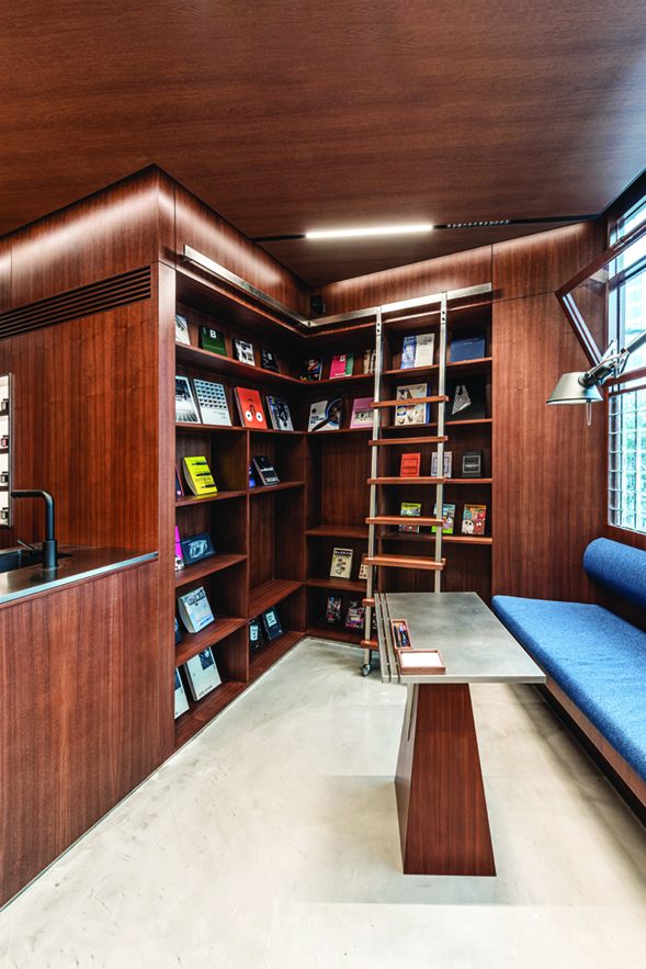 2층은 방문객이 자신의 속도에 맞춰 머물 수 있는 공간으로 기획하였다. 니즈디자인랩은 방문객이 파이롯트 필기구를 차분한 분위기 속에서 자유롭게 사용해 보며, 온전히 자신만의 기록과 감성에 집중할 수 있는 공간을 연출하였다. 월넛의 텍스처가 풍기는 은은한 향과 질감은 오래된 서재의 결을 닮아있다. 짙고 부드러운 질감은 빛에 따라 방문객의 시선을 이끄는데, 각 구역의 질감은 매트하고 깊이 있게, 또 다른 지점에서는 온기를 품은 듯 포근하게 번진다. 이 미묘한 변화 속에서 방문객은 자연스럽게 속도를 늦추고 공간 안에서 걸음을 멈춘다. 오래된 서재의 감성과 현재의 공간은 시간을 천천히 녹아내며 서정적 깊이를 자아낸다.