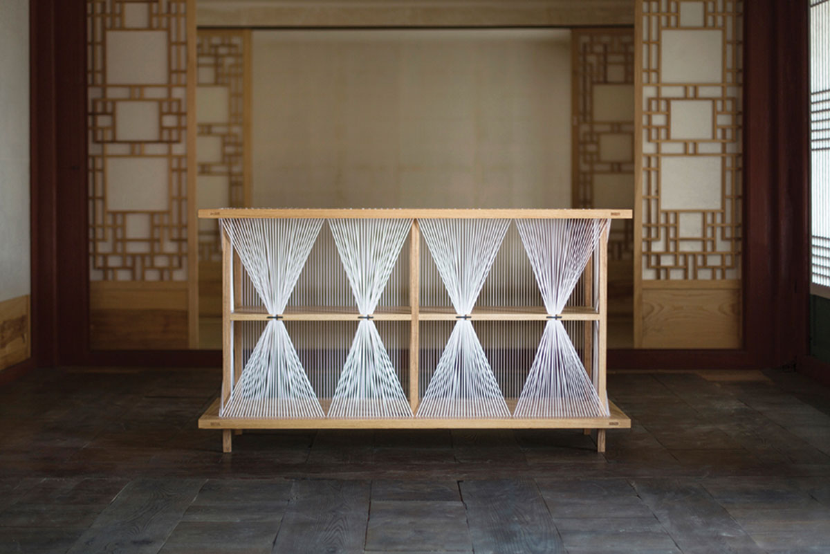 한국 전통가구(사방탁자)를 현대적으로 재해석하여 사면에서 수납이 가능하도록 고안된 가구로, 전통 짜맞춤 기법으로 제작되었다. 비율과 선이 만드는 정교한 조합은 그 자체로 공간을 압도한다.