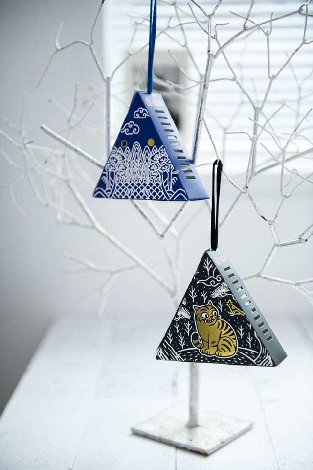 라이프스타일 브랜드 글리프(GLEAF)가 한국의 길상(吉祥)과 향을 결합한 신제품 ‘길상 사쉐(Sachet)’를 한정판으로 출시했다. 이번 제품은 한국 전통 향갑과 프랑스 전통의 향주머니에서 영감을 받아 개발됐으며, 삼각형 패키지 형태에 각기 다른 색상과 전통 상징 문양을 담아 인테리어 오브제로서의 심미성과 향의 기능을 동시에 충족시켰다. ‘산군향, 용운향, 수문향, 천조향, 오봉향’ 등 다섯 가지 자체 조향 향의 구성으로 사용자의 취향에 따른 선택의 폭을 넓혔다.